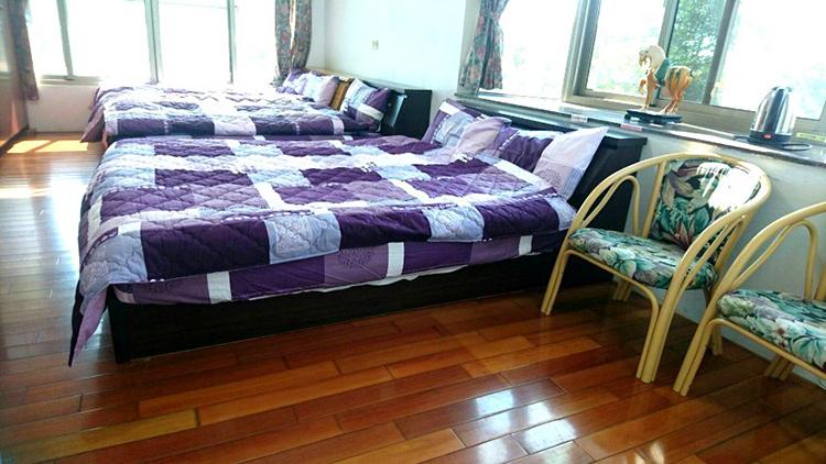 42吋液晶電視、免費wi-fi上網、冷氣、新沙發、舒適高級木板、2面大八角窗、欣賞田園風光、高挑、寬敞、大間。2張雙人床及1張單人床。